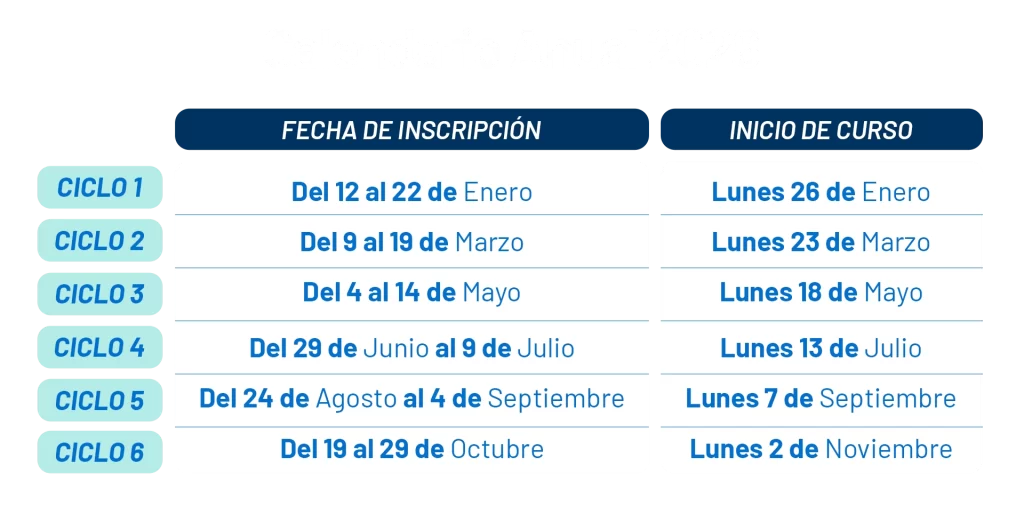 Consulta los Horarios para este ciclo.